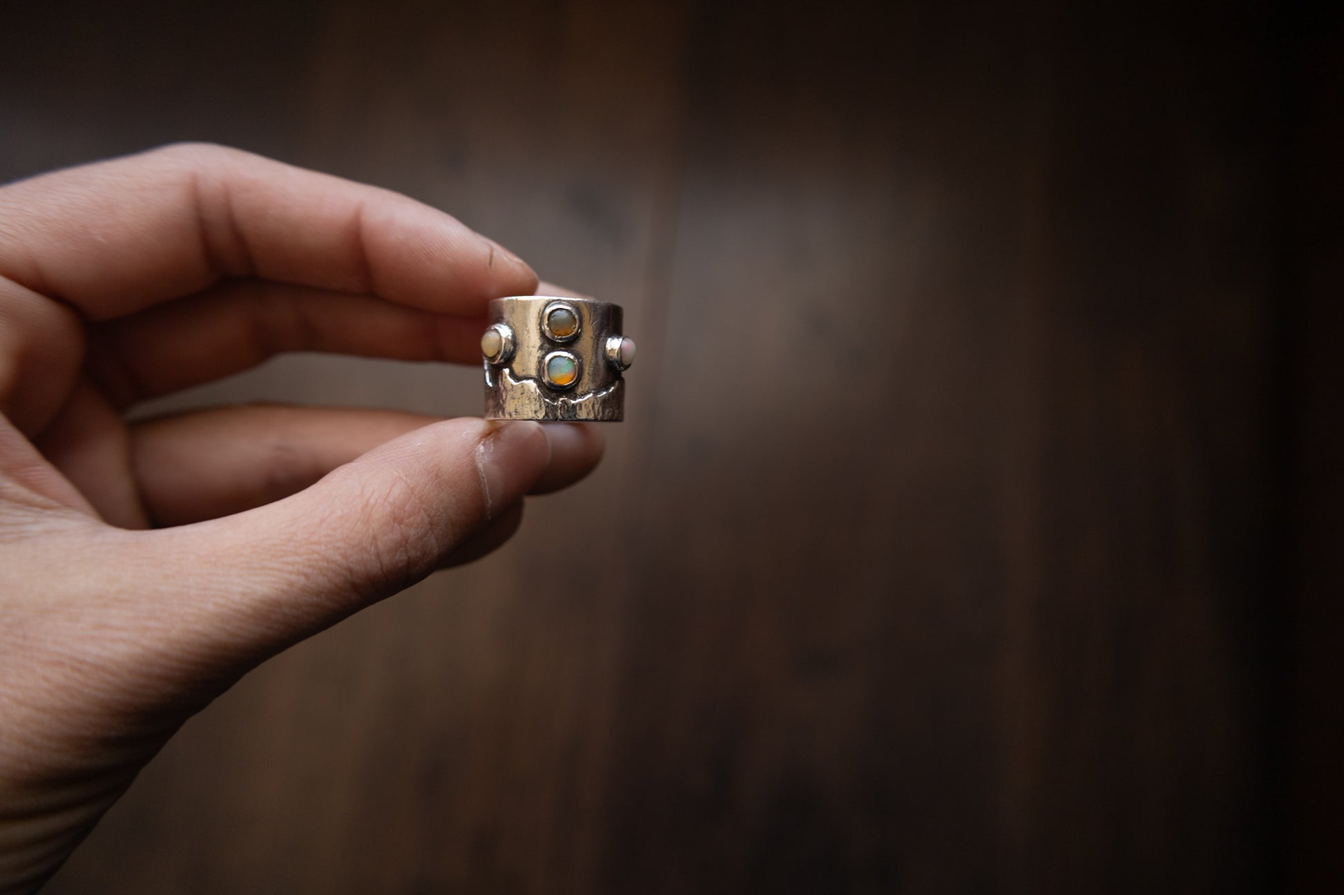 Anillo de montañas hecho a mano en plata 980.