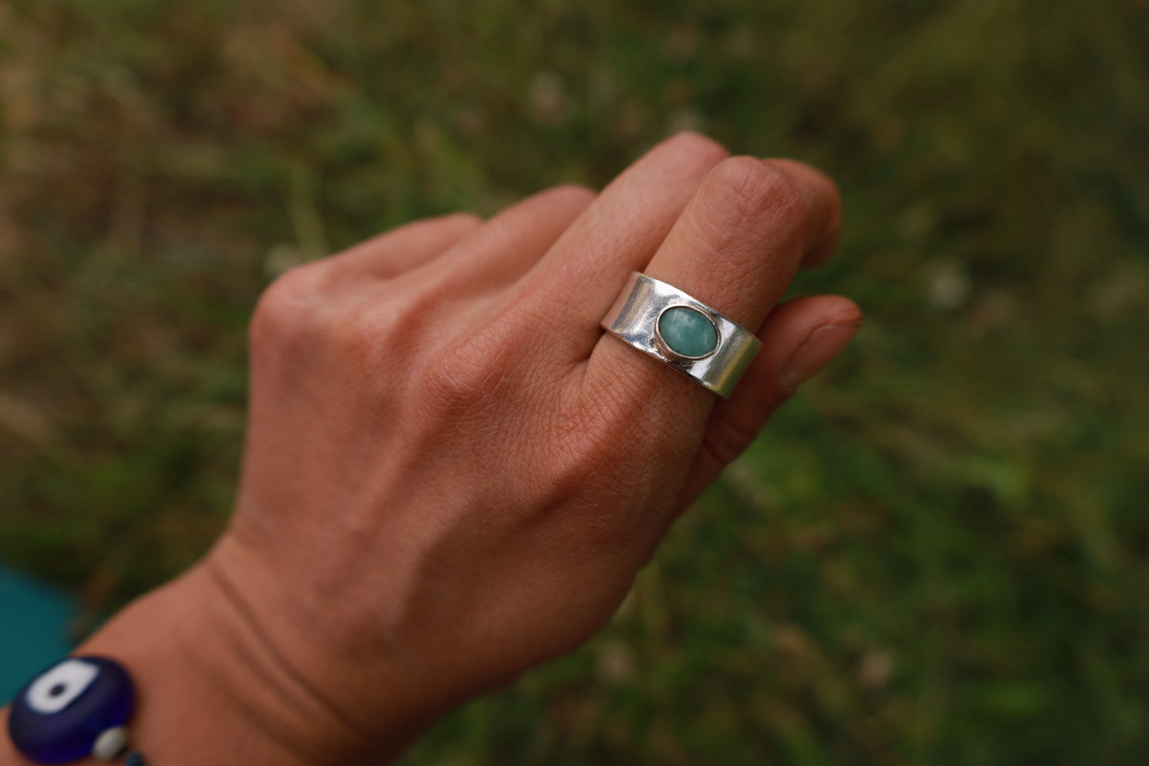 Anillo grueso con piedra Larimar.