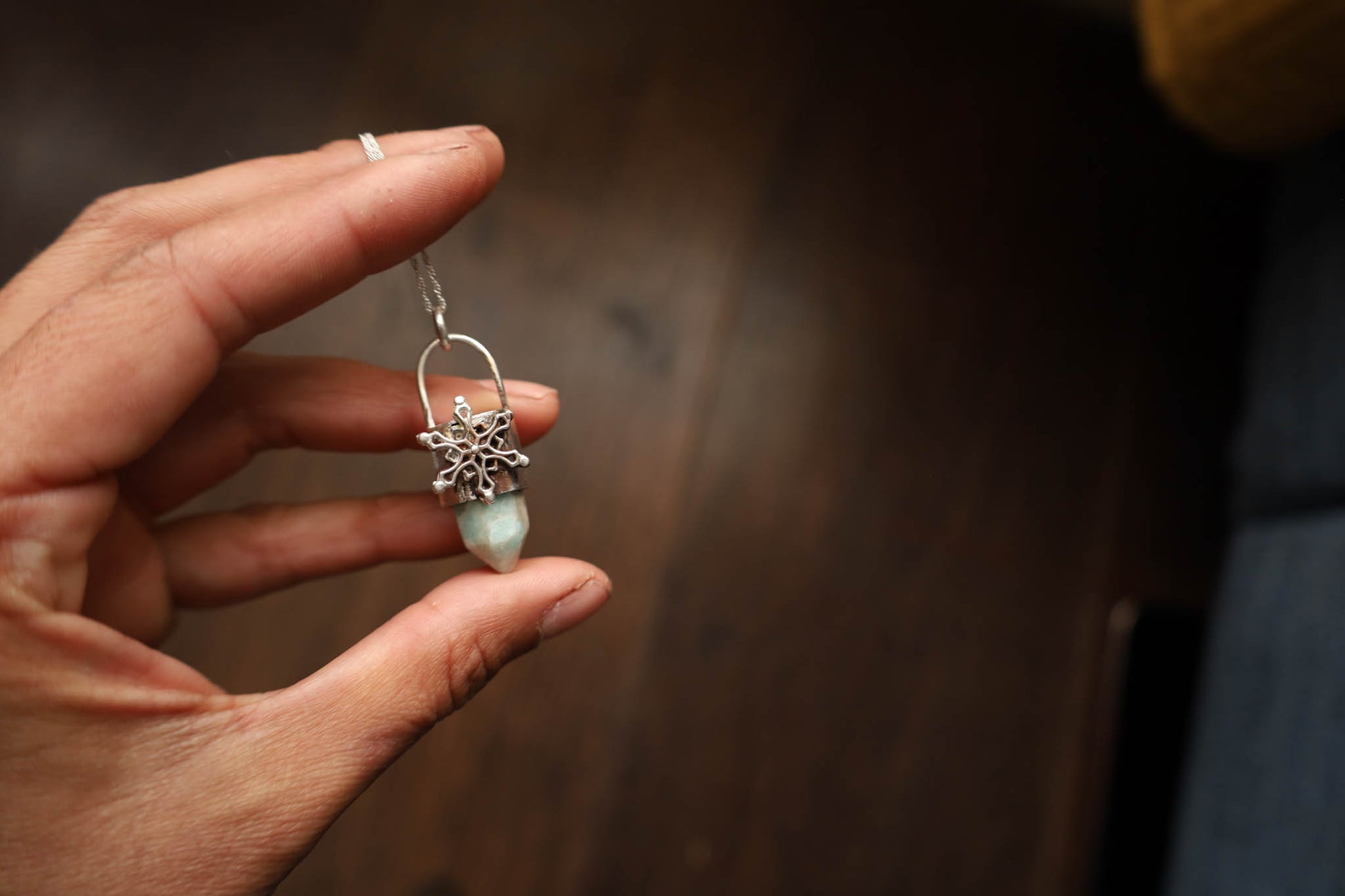 Piedra de energía suave y profunda, vinculada a la calma, la comunicación clara y el equilibrio emocional. Ideal para acompañar procesos de transformación desde un lugar de serenidad.