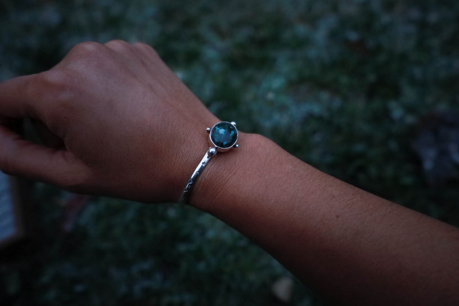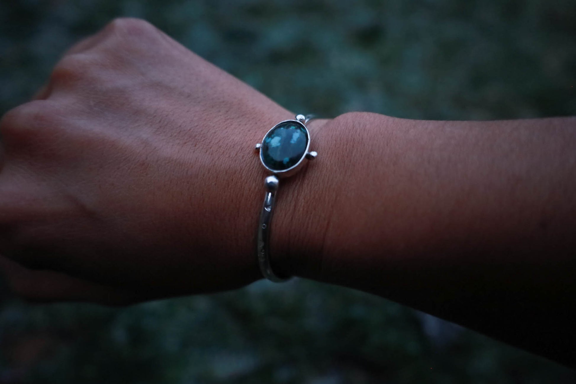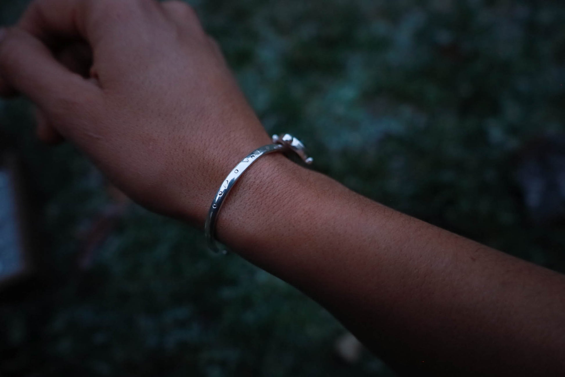 Esclava de plata 950 trabajada a mano, con patrones orgánicos inspirados en la naturaleza patagónica.