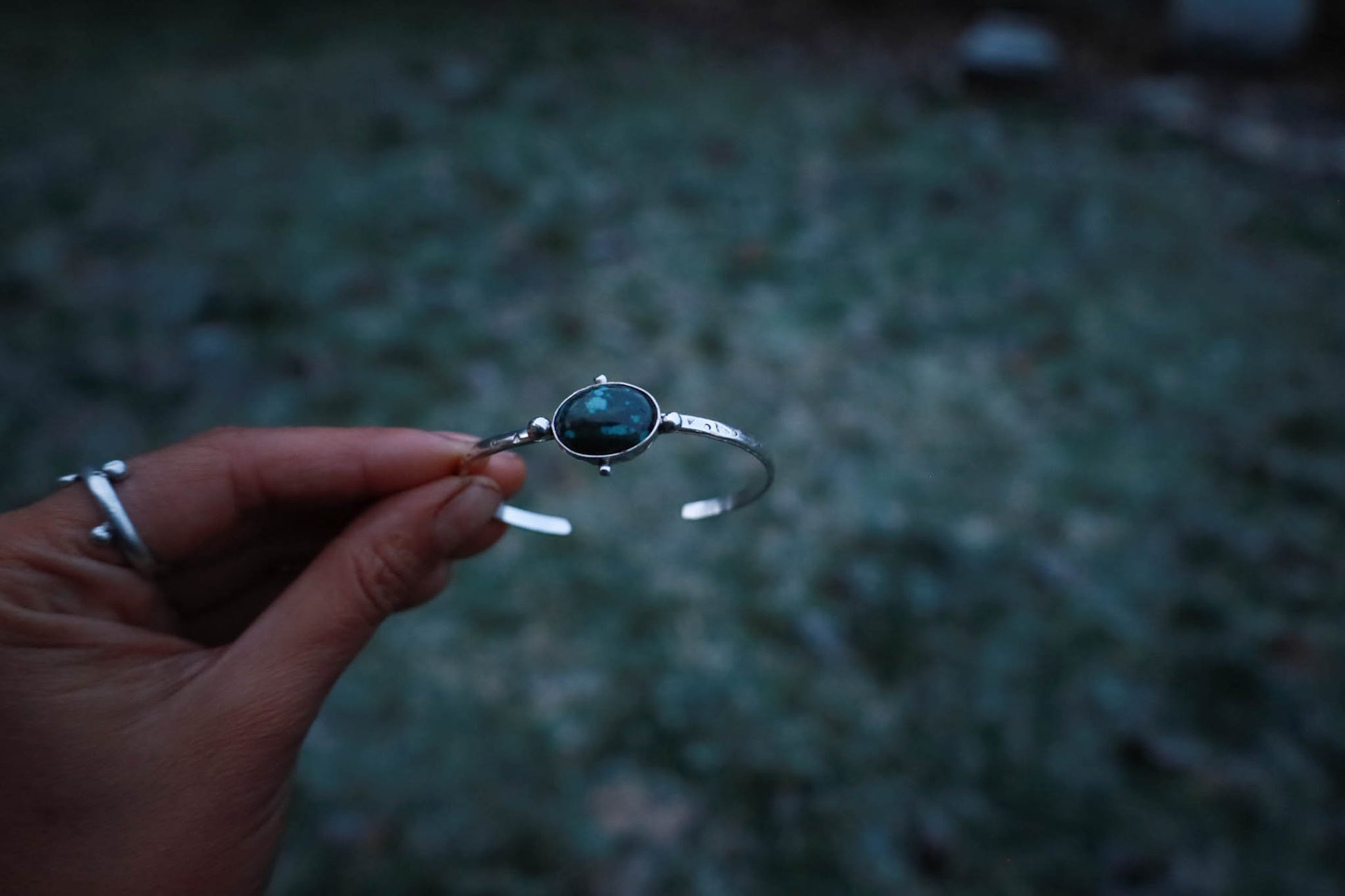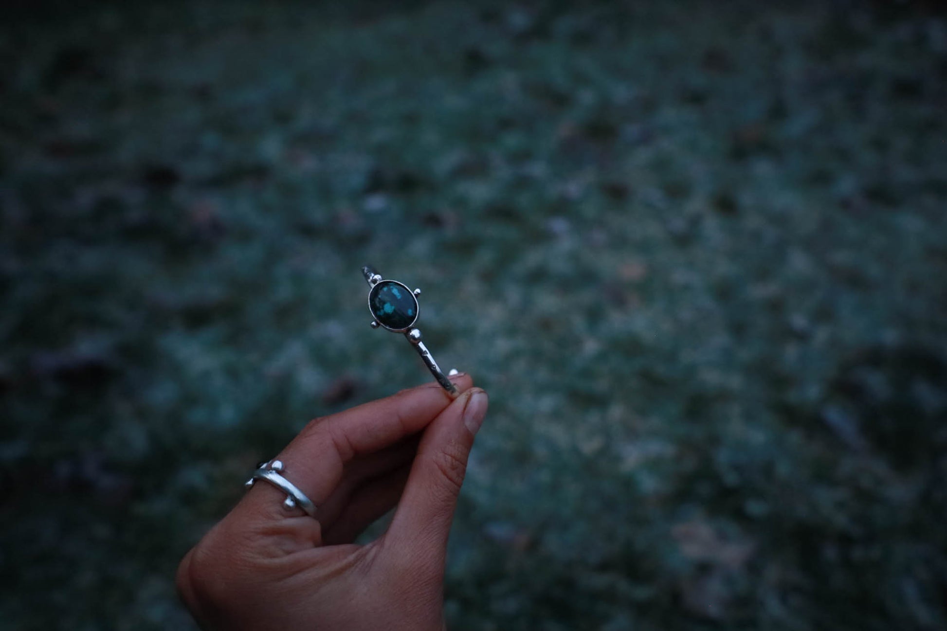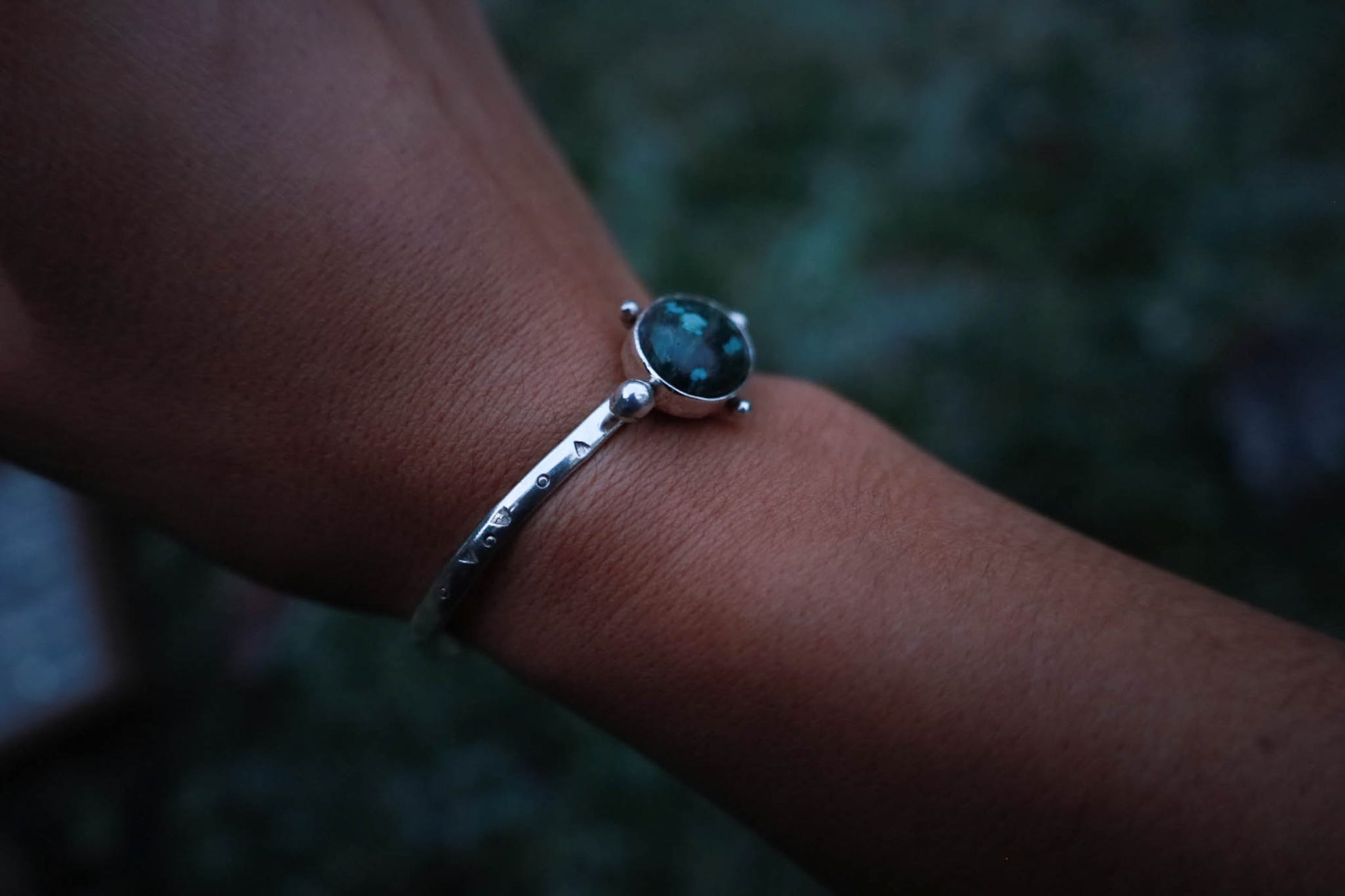 Esclava de plata 950 trabajada a mano, con patrones orgánicos inspirados en la naturaleza patagónica.
