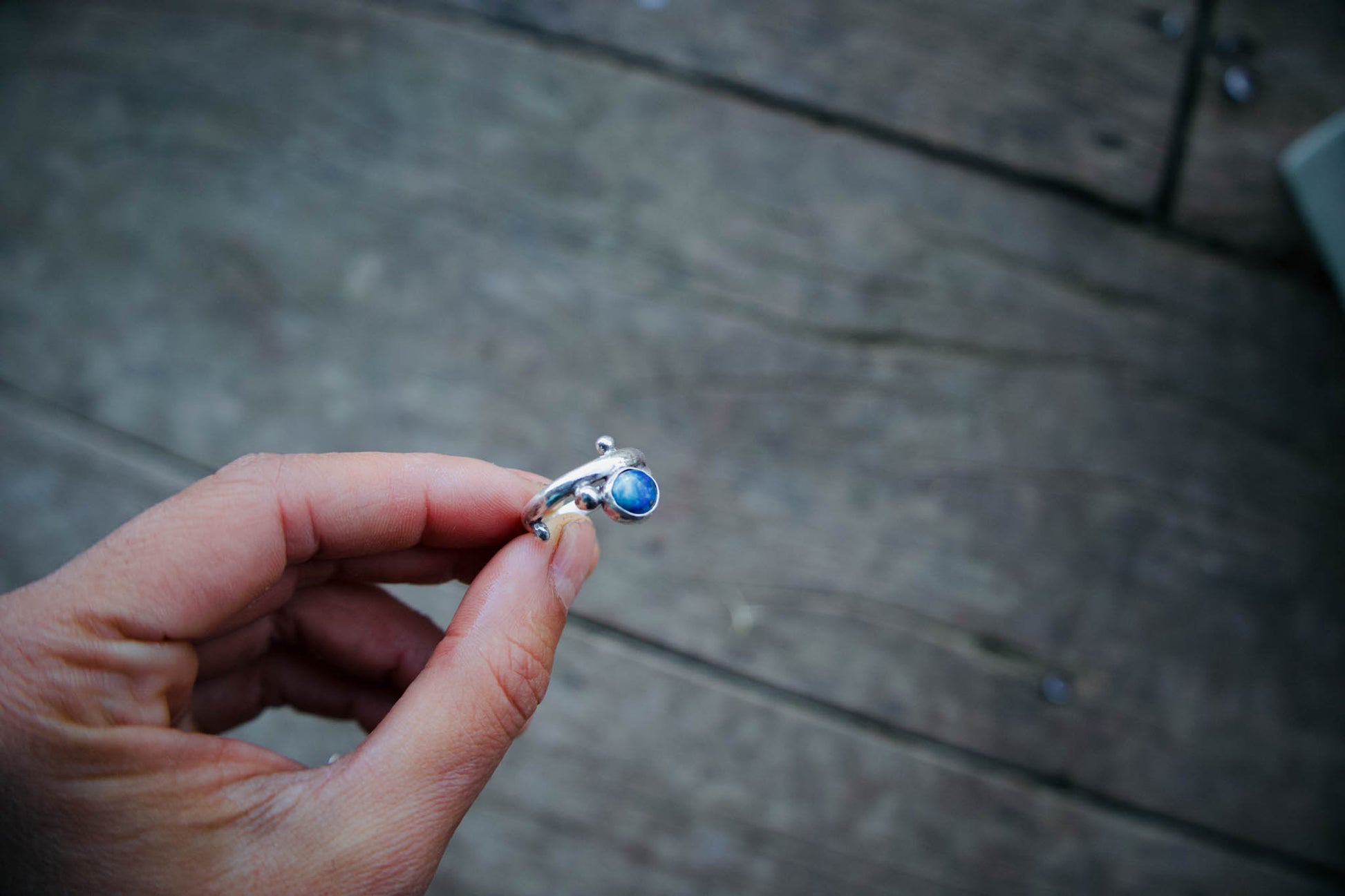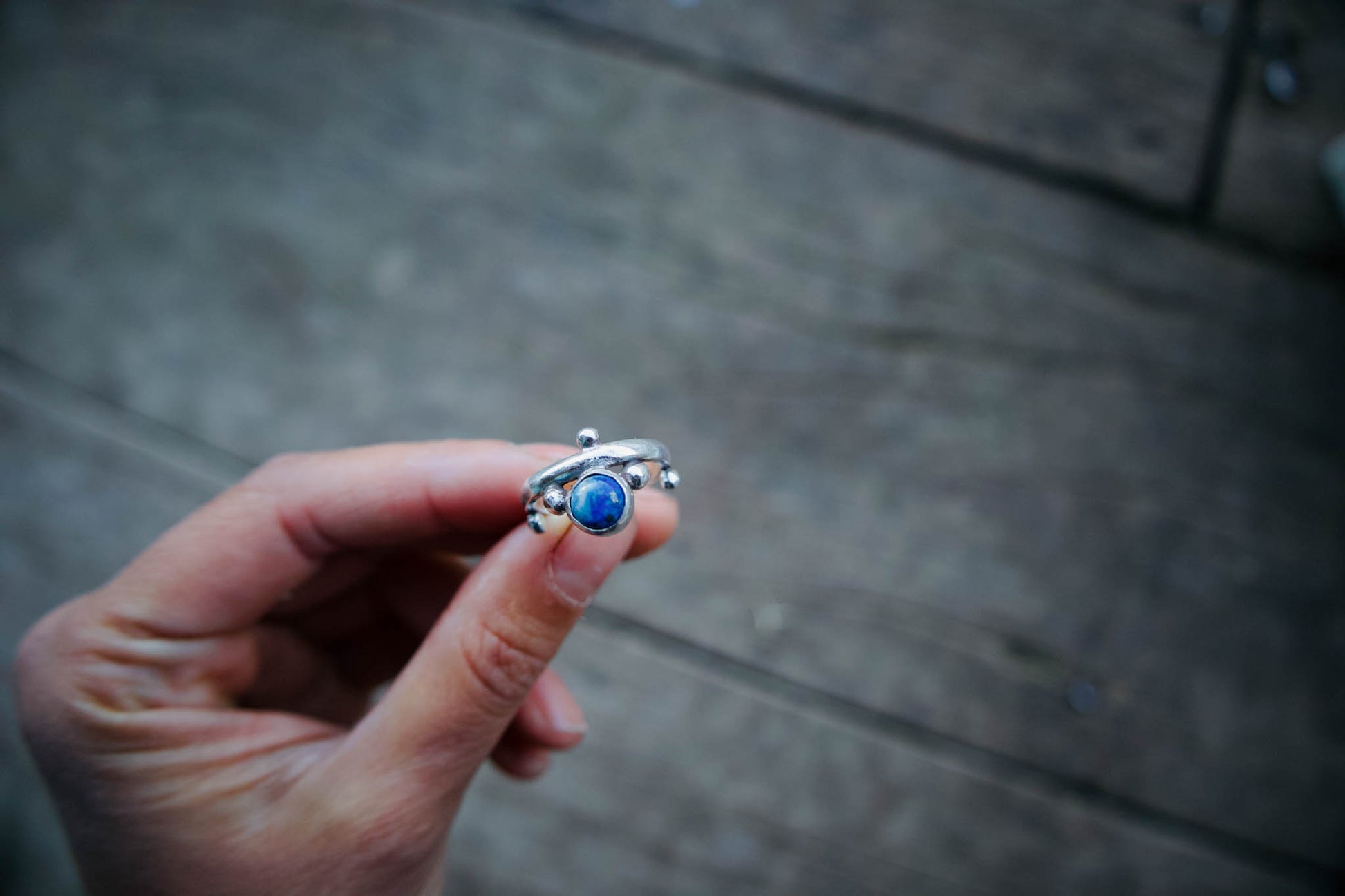 Piedra vinculada a la sabiduría interior, la claridad mental y la comunicación honesta. Su color azul profundo con vetas doradas lo convierte en una pieza con carácter y significado.